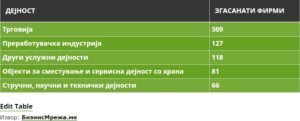 ВО КОИ ДЕЈНОСТИ СЕ ЗАТВОРИЛЕ НАЈМНОГУ ФИРМИ?