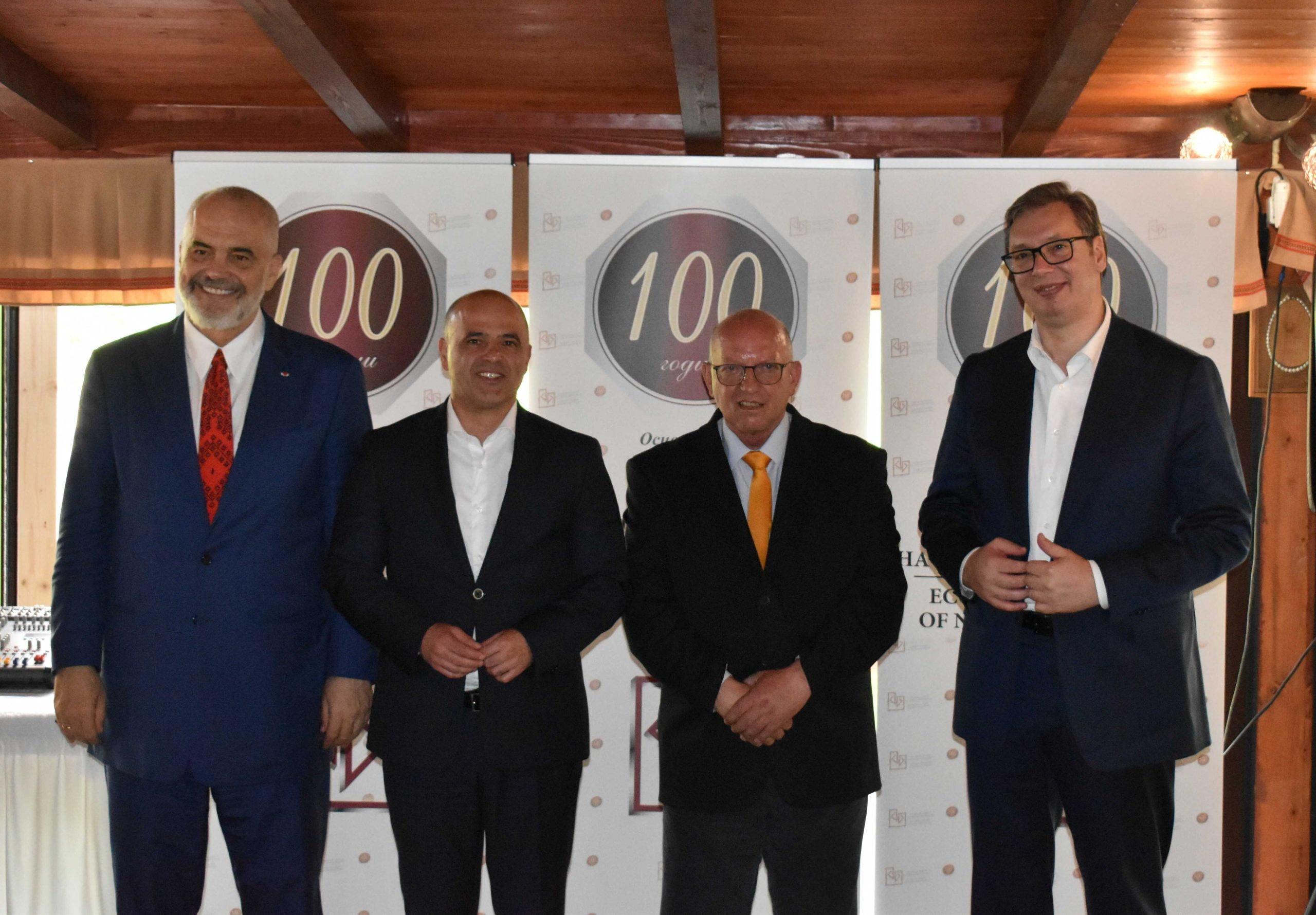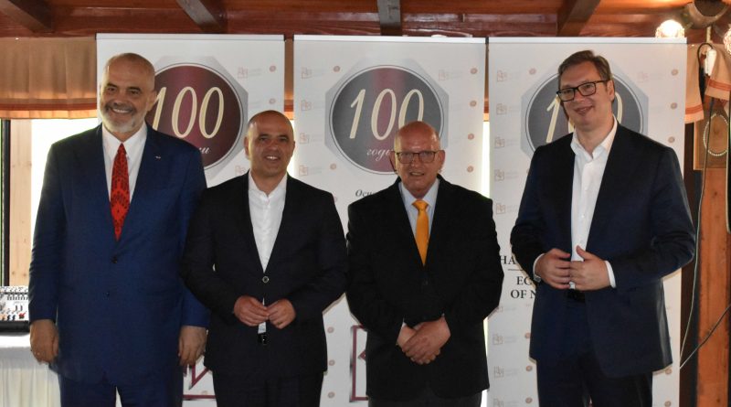 Во таа чест, врз основа на член 25 од Статутот на Стопанската комора на Северна Македонија и Одлука за определување на награди што ќе бидат доделени по повод 100 годишнината од постоењето на СКСМ од 28.02.2022 година, Управниот одбор на Стопанската комора на Северна Македонија, на седницата одржана на 19.05.2022 година донесе: Одлука за доделување на Награда на Стопанската комора на Северна Македонија за личности кои најмногу допринеле за регионална бизнис интеграција на Александар Вучиќ, претседател на Република Србија; Еди Рама, претседател на Владата на Република Албанија; Зоран Заев, претседател на Владата на Република Северна Македонија (2017-2021) и д-р Димитар Ковачевски, претседател на Владата на Република Северна Македонија