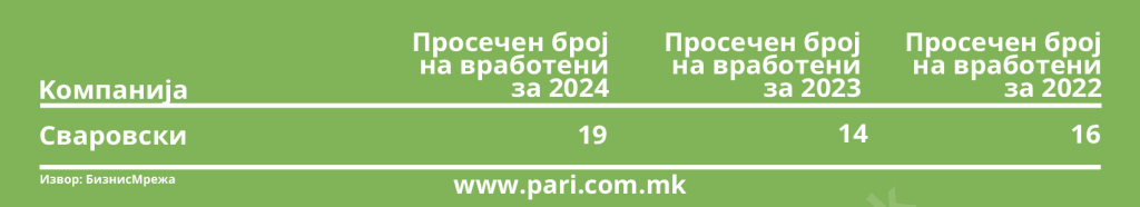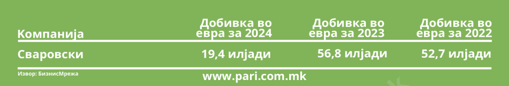 Добивката во 2024 година бележи драматичен пад од 65,8 насто. Сваровски лани заработиле само 19,4 илјади евра, додека, пак, профитот во 2023 година изнесувал 56,8 илјади евра и според податоците скромно пораснал во однос на 2022 година. Прашањето е дали е ова временска фаза или почеток на подолготрајно намалување на профитабилноста?