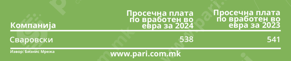 Просечната плата по вработен останува практично непроменета. Лани просечна нето-плата по вработен изнесувала 538 евра и се забележува мало намалување во однос на 2023 година, кога платата изнесувала 541 евро.