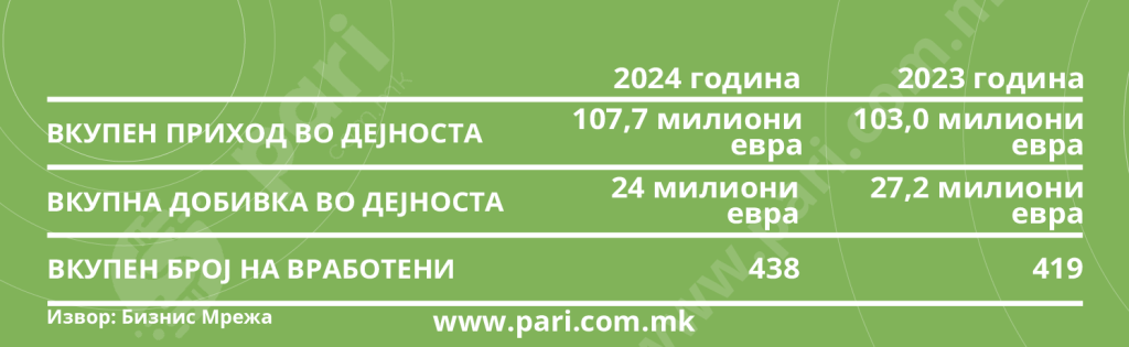 Оваа компанија е на врвот и по приход и по добивка од производство на струја од обновливи извори на енергија. Лани остварениот приход ѝ бил 15 милиони евра, но тоа е дури 29 насто помалку отколку во 2023 година. Добивката на оваа компанија чие целокупно производство на струја е од обновливи избори на енергија, изнесувала 7,2 милиони евра, речиси половина од приходот. И оваа добивка била значајно помала отколку во 2023 година, за дури 23,6 насто.