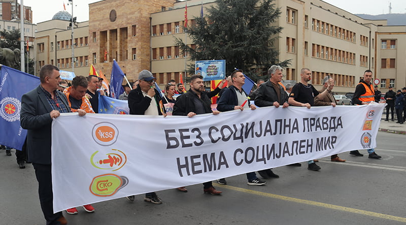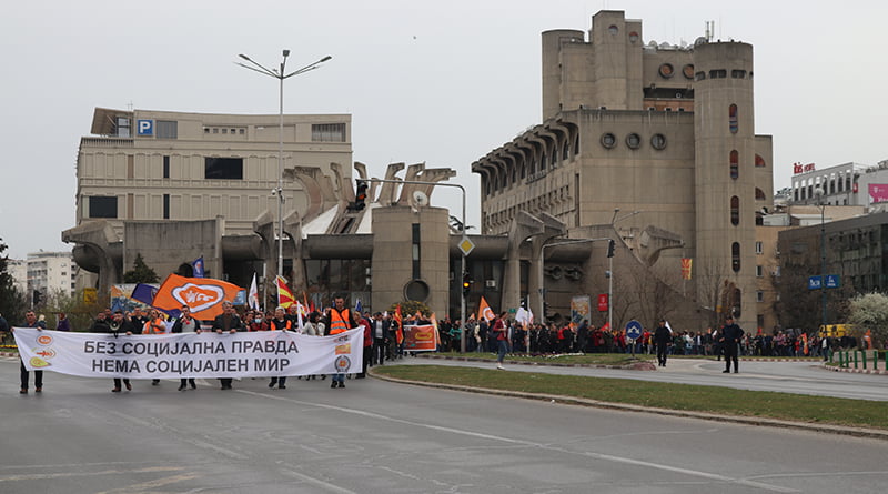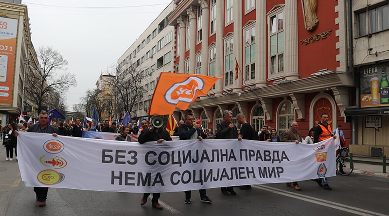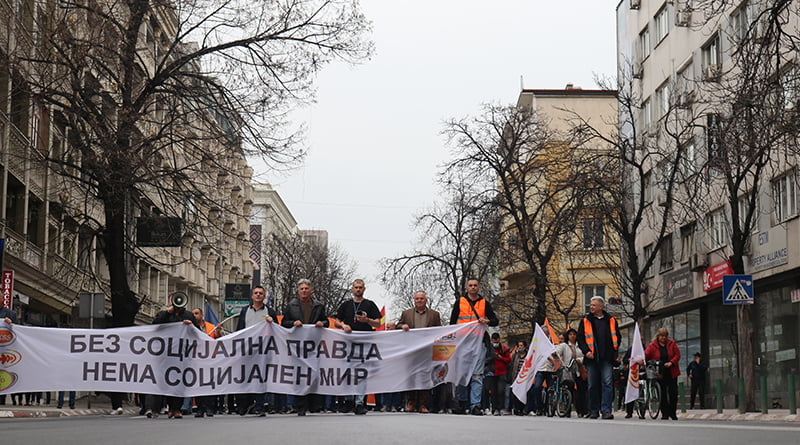 Без социјална правда, нема социјален мир, беше мотото на денешниот протест на гранските синдикати при КСС кој започна од Собранието, па заврши пред Владата на Р.М.