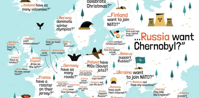 „Зошто Германија има толку многу патишта?“ беше прашањето за таа земја кое најмногу ги интересираше Американците, додека за Франција клучното прашање беше: „Зошто имаат петел на дресот?“. Исто така беа заинтригирани зошто на Кипар има толку многу мачки. Кога станува збор за Велика Британија, најмногу ги интересирало зошто возат по левата страна на патот, додека за Русија ги мачело прашањето зошто го сакаат Чернобил.