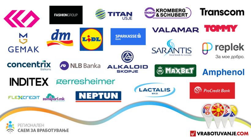 Оваа година, Регионалниот саем за вработување ги обединува бројни домашни и регионални компании, меѓу кои: Kromberg & Schubert, Gemak, Concentrix, Replek, Titan Usje, Transcom, Stopanska Banka, Amphenol, Fashion Group, Gerresheimer, ProCredit Banka, Neptun, Inditex, DM, Alkaloid, NLB, Lidl, Valamar Riviera d.d. (HRV), Maks Bet, Sarantis (SRB), Flex Credit, Sparkasse Bank, Tommy (HRV), Lactalis и многу други!