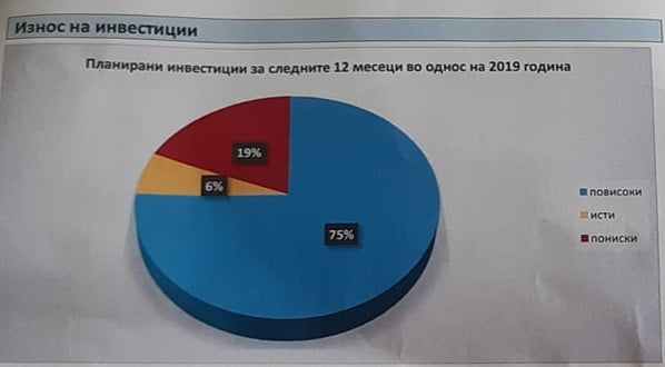 75 % од компаниите се изјасниле дека планираните инвестиции во наредните 12 месеци ќе бидат повисоки од претпандемискиот период, односно од 2019 година, додека 37,5 % од нив рекле дека зголемувањето во однос на 2019 година ќе биде повеќе од 51 %.