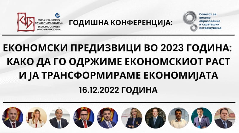 За таа цел Советот за унапредување на високото образование и стратешки истражувања во рамки на концептот „Комора на иднината – консултант на бизнисот“ на 16 декември 2022 година (петок) организира конференција со наслов: „Економски предизвици во 2023 година: како да го одржиме економскиот раст и ја трансформираме економијата“.