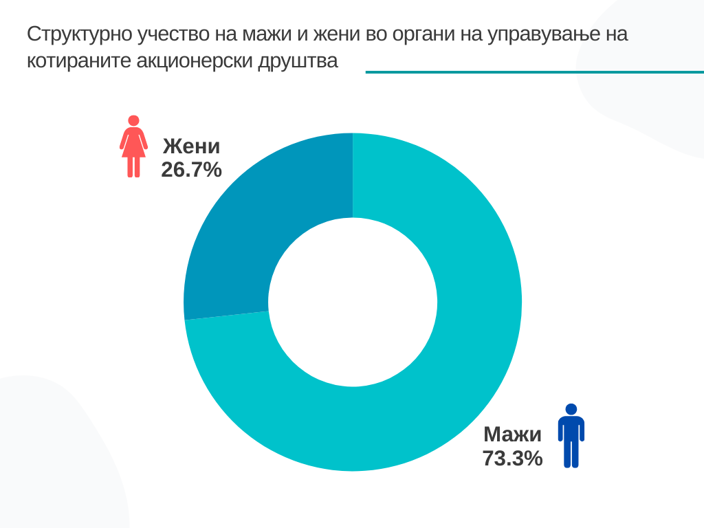 Од вкупно 543 членови во органите на управување на котираните акционерски друштва, само 26,7% се жени.