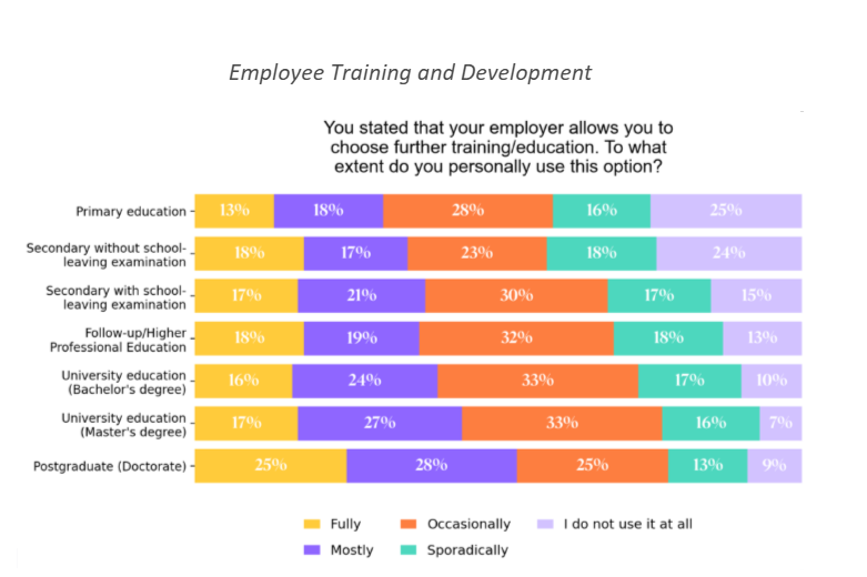Подетален преглед на податоците покажува јасен образец: колку е повисоко образованието на вработениот, толку е поголема мотивацијата за понатамошна обука и развој.